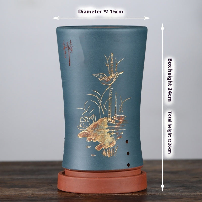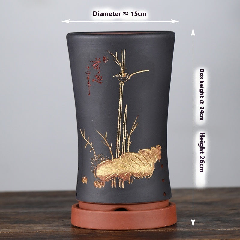 Bring elegance to your home garden with this Chinese-inspired purple sand planter. Purple sand and hardy stone comprise this large floor-type pot that can be used for orchids, flowers, or ornamental plants. Its strong durability, natural texture, and cultural orientation make it a perfect addition to indoor and outdoor gardening. Select from a range of sizes according to your gardening needs.