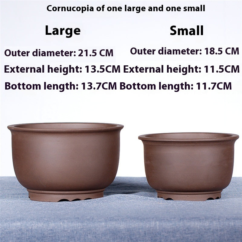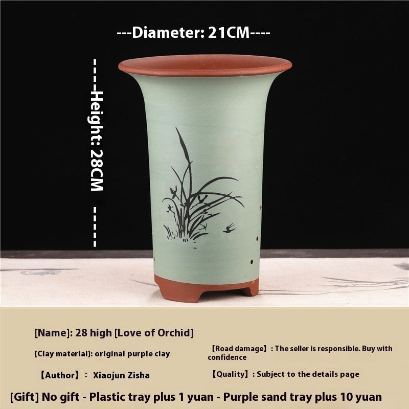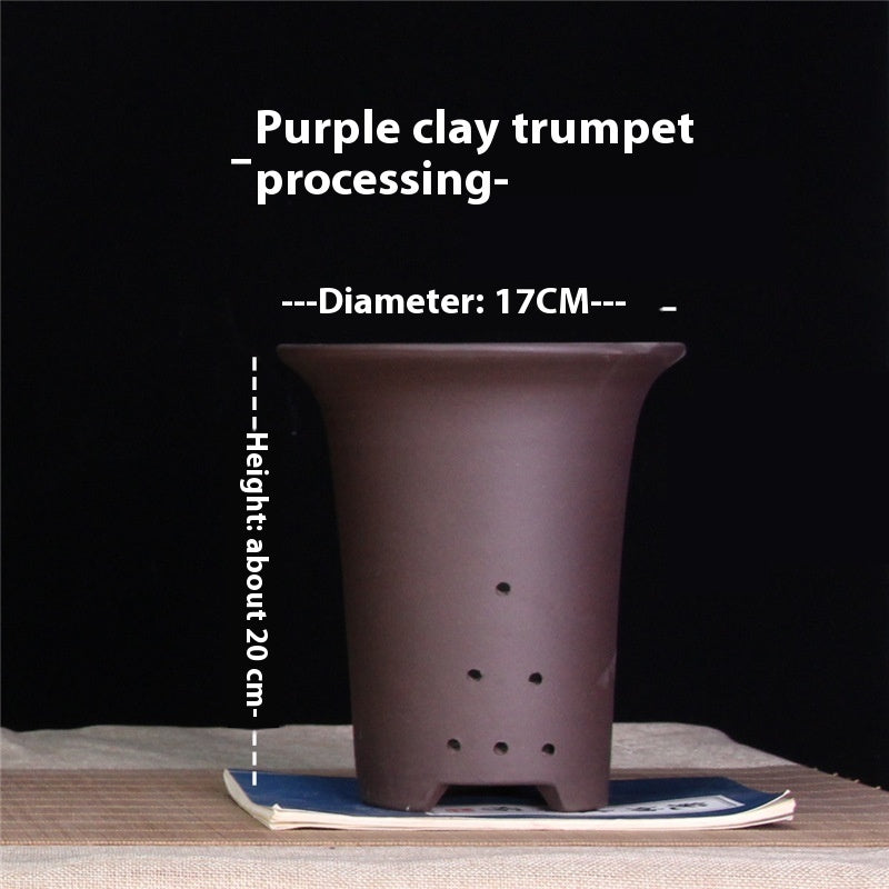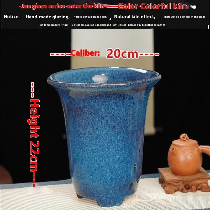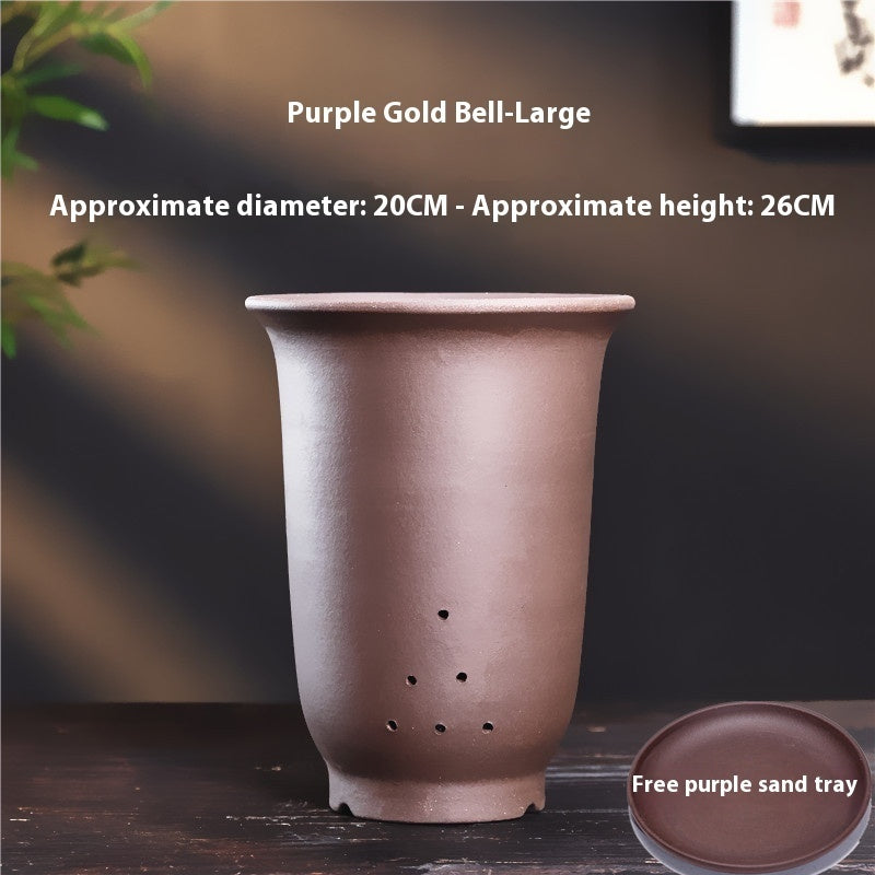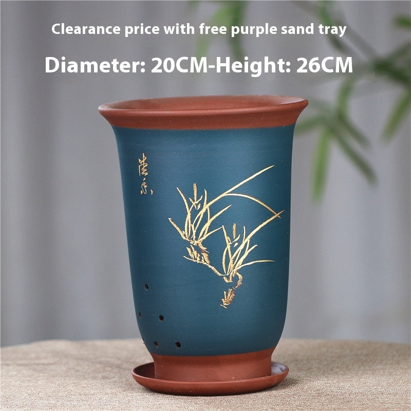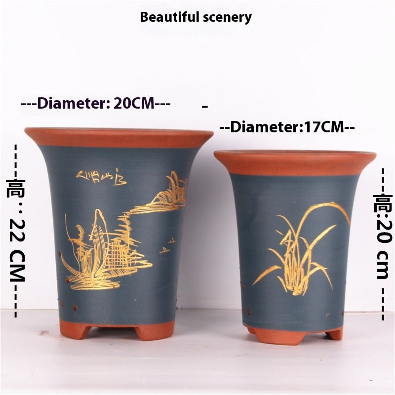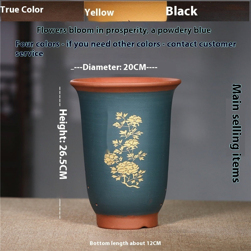 Large Glazed Stone Flower Pot with Purple Clay Pattern