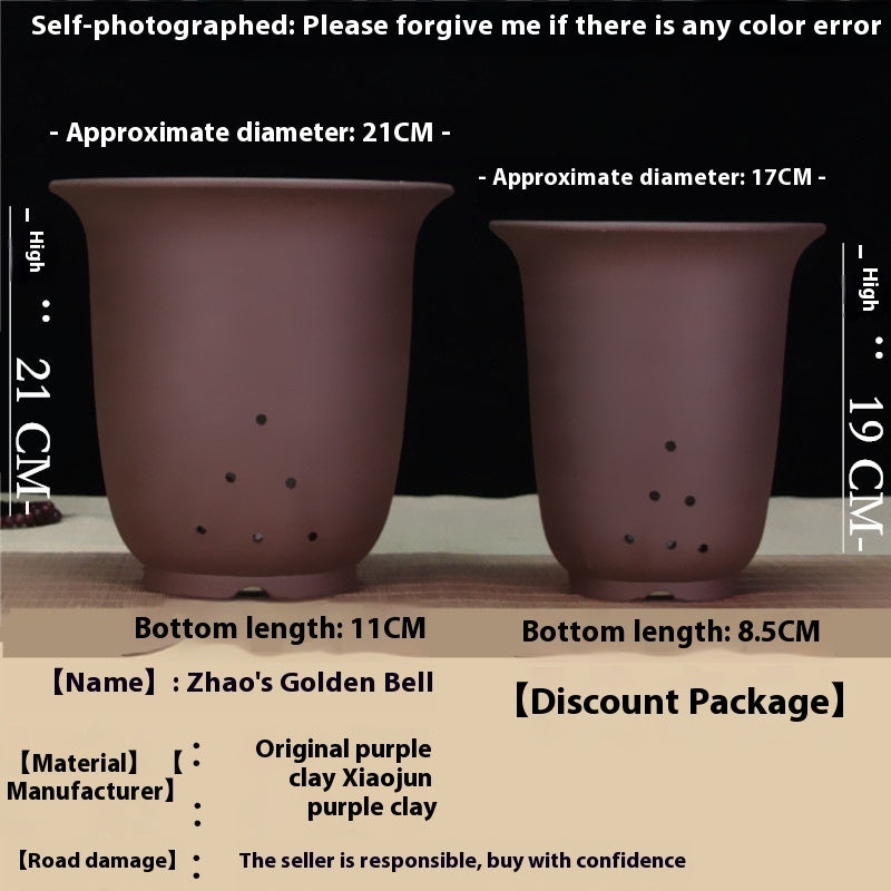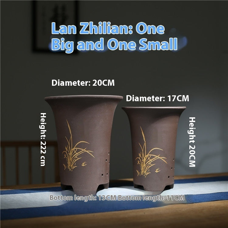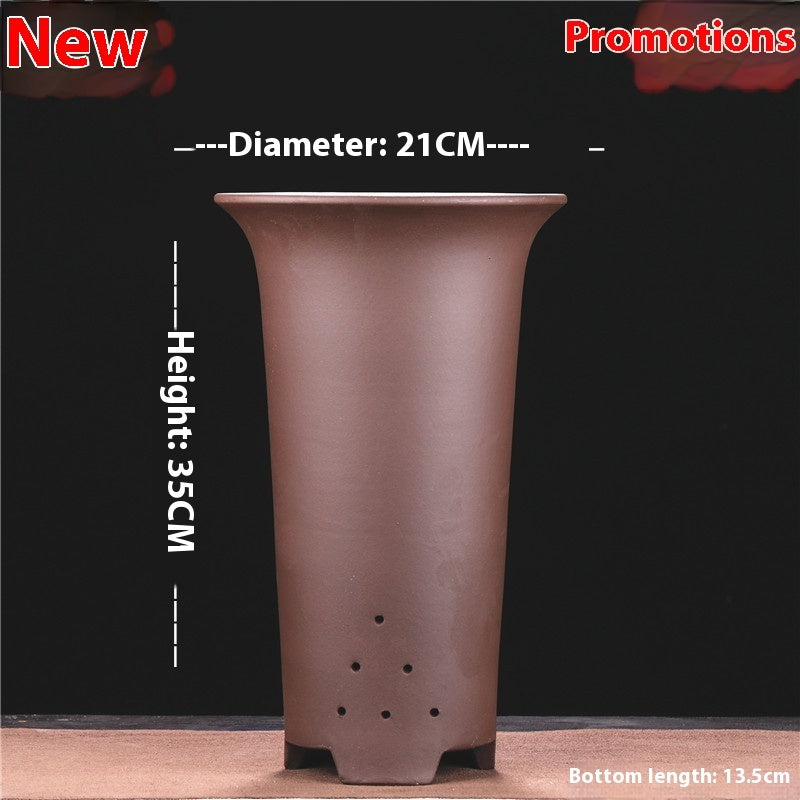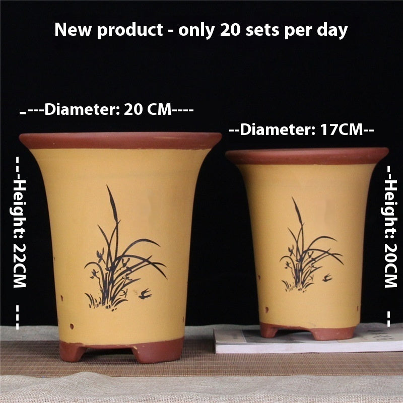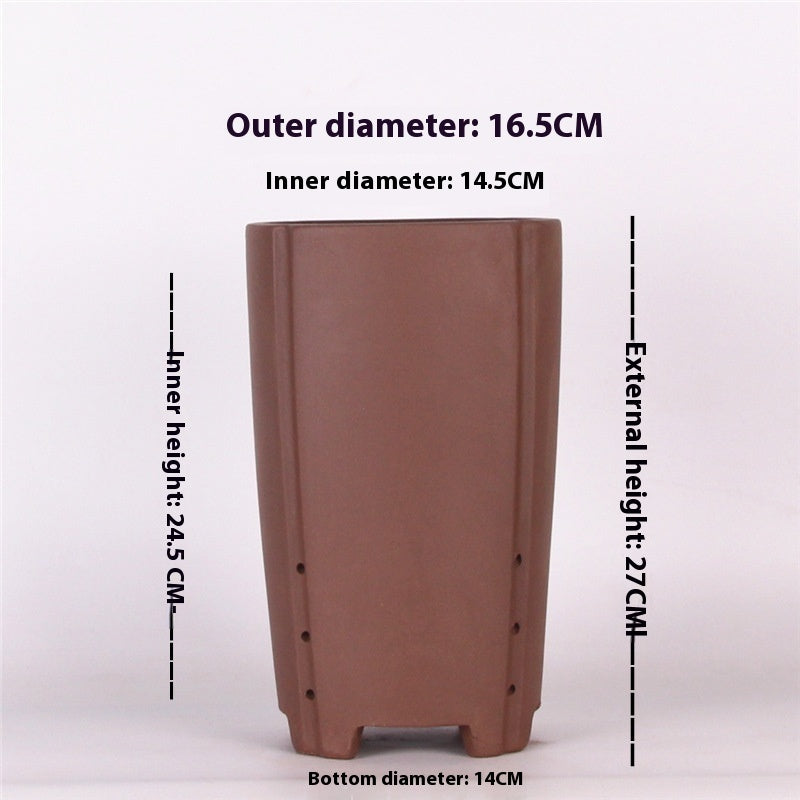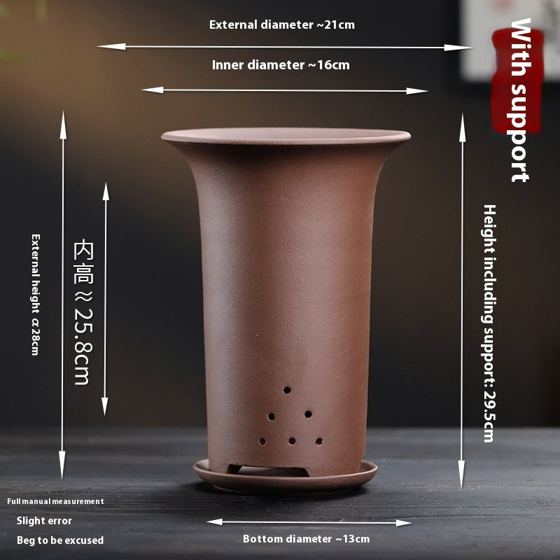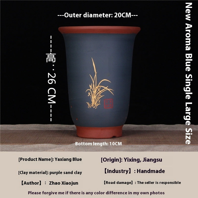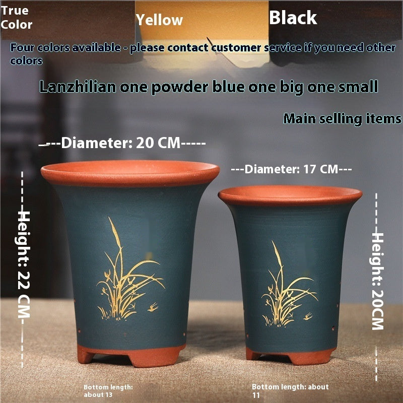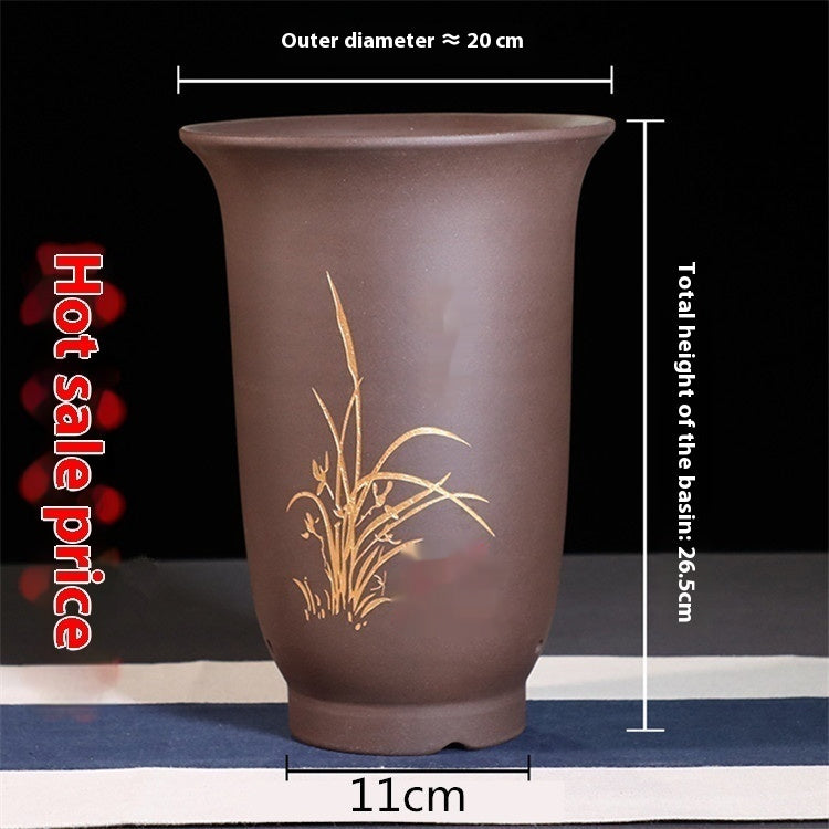 Large Glazed Stone Flower Pot with Purple Clay Pattern