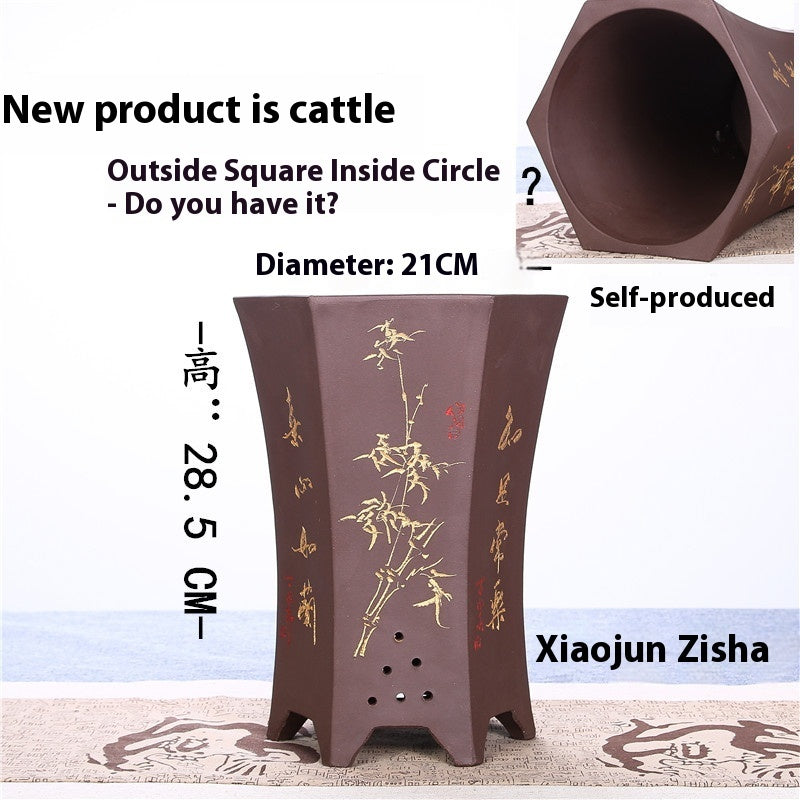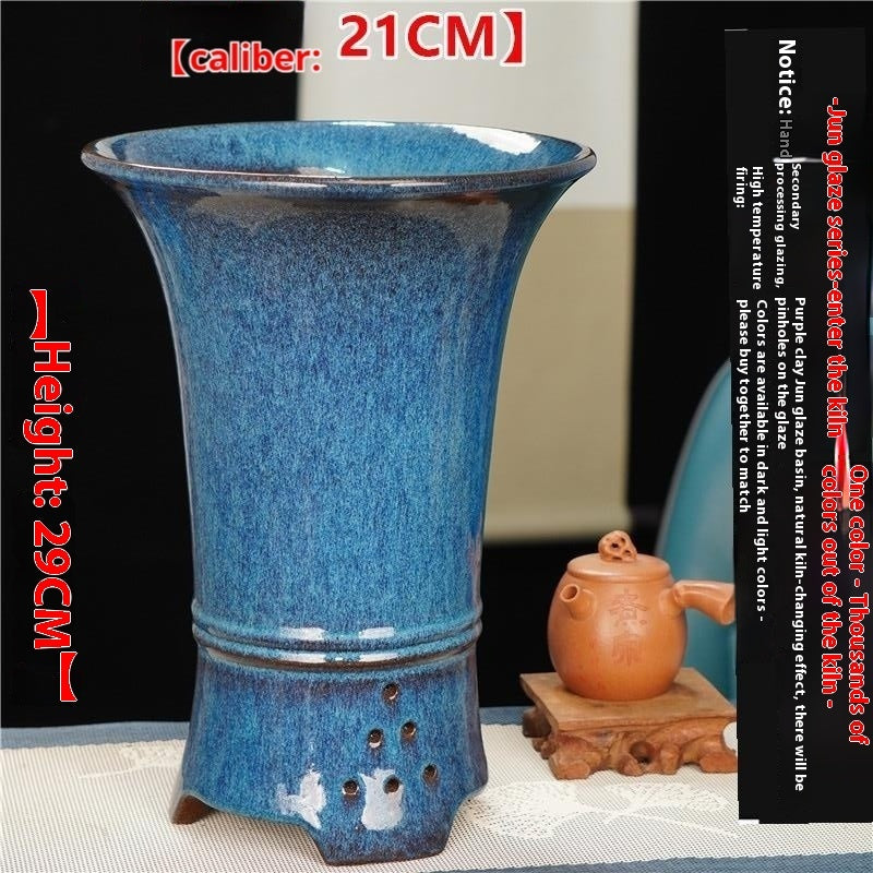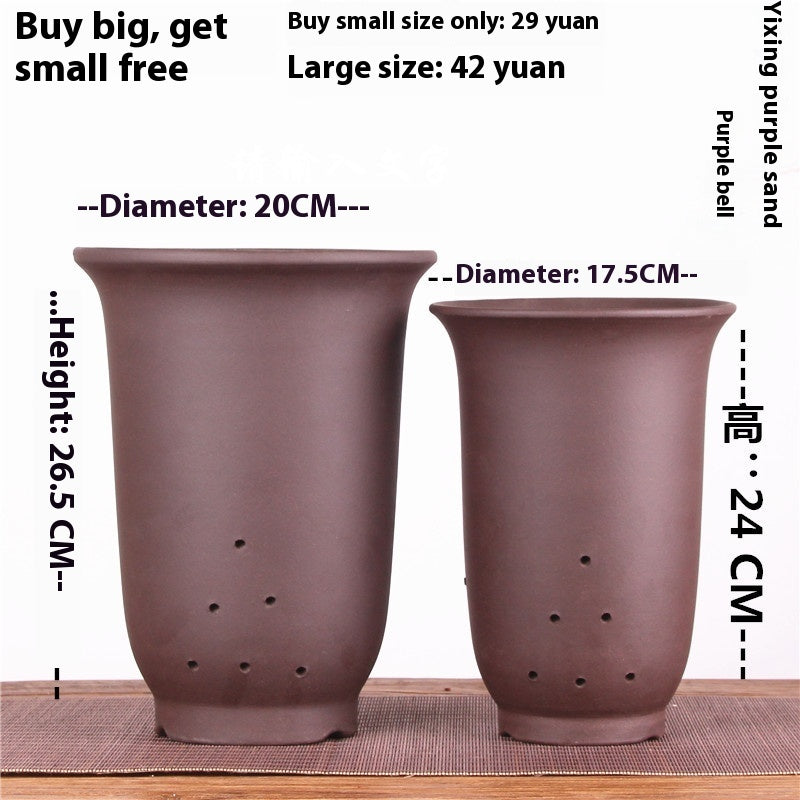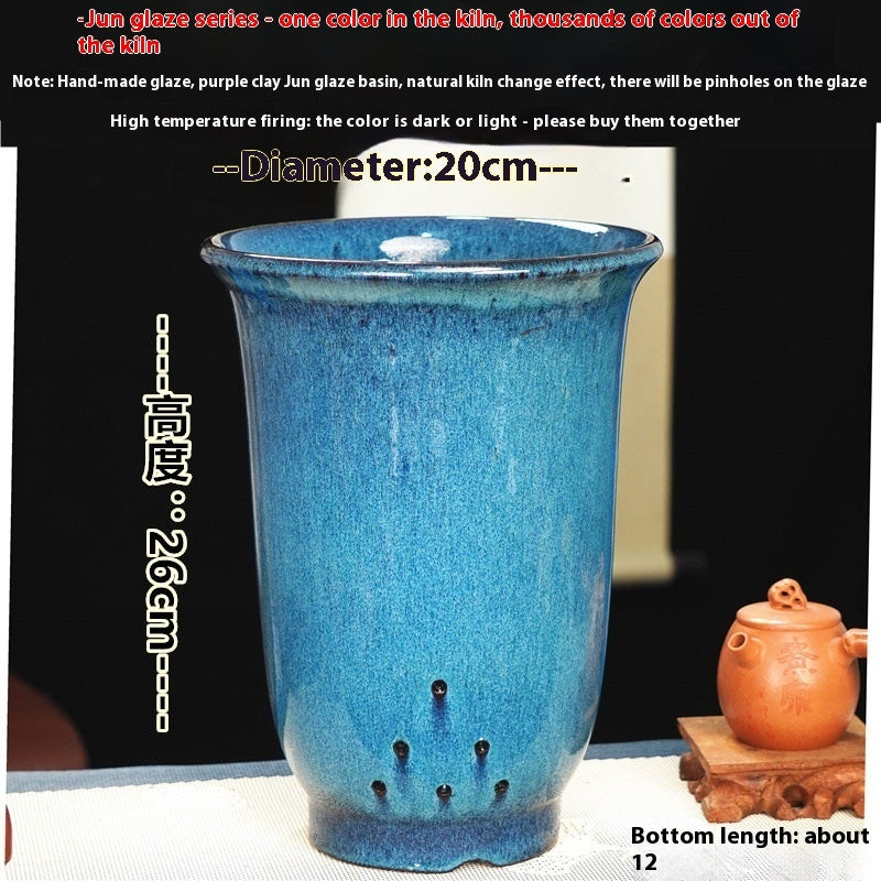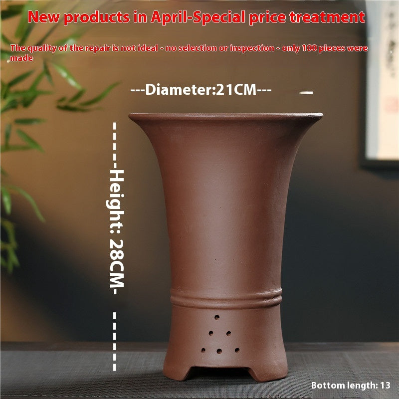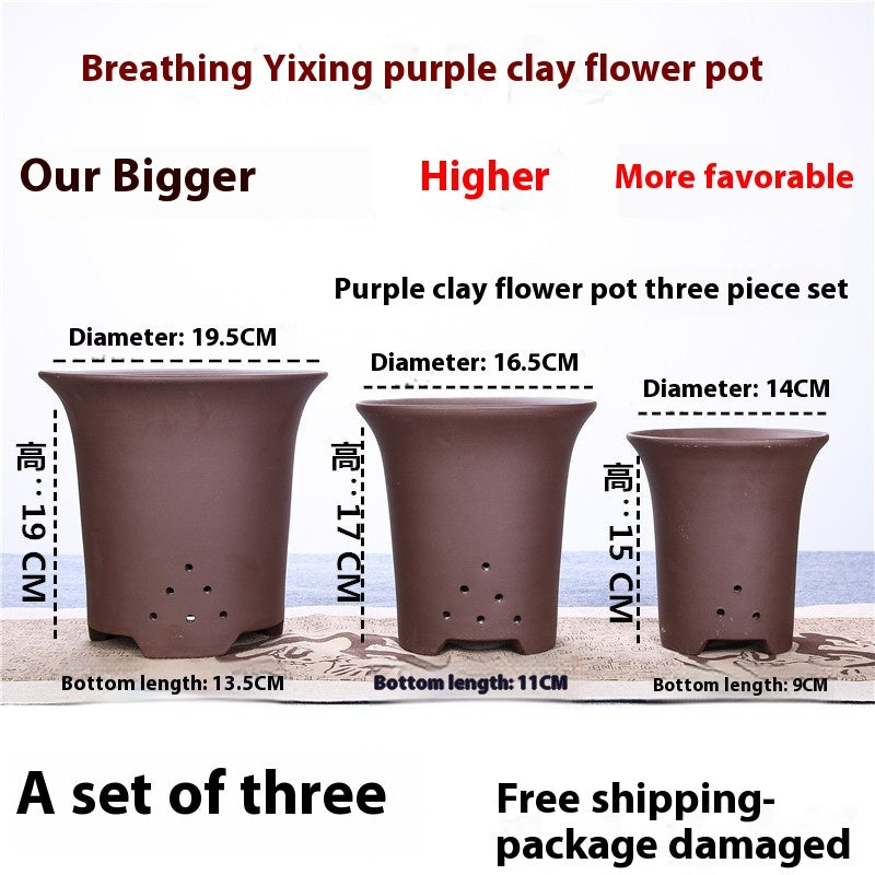 Durable large stone flower pot with glaze and purple clay pattern, suitable for gardening at home and floor decoration.