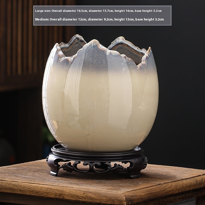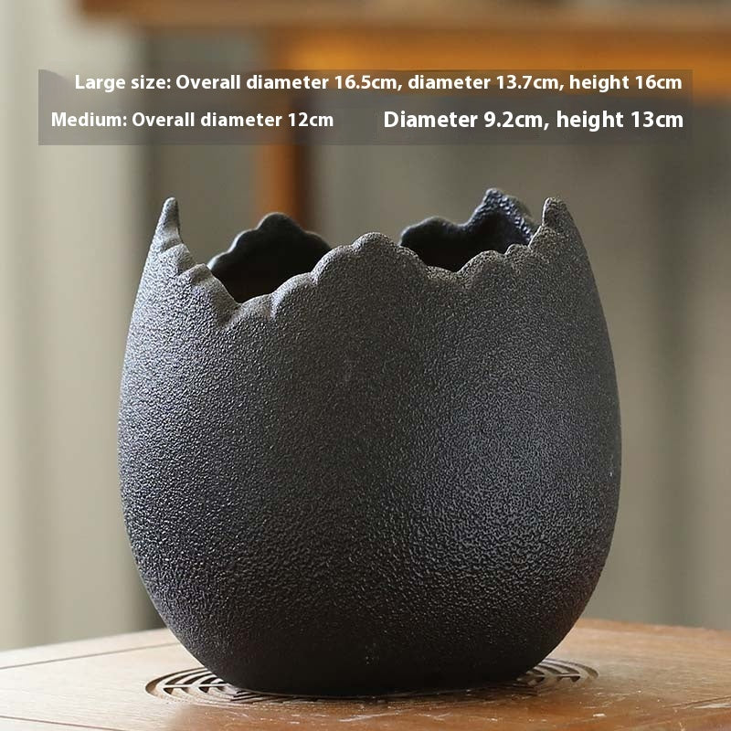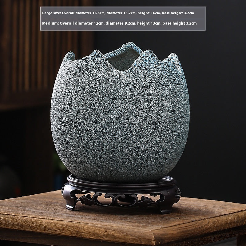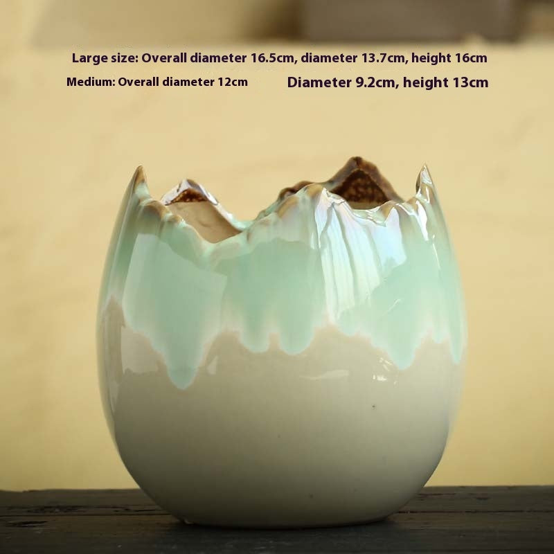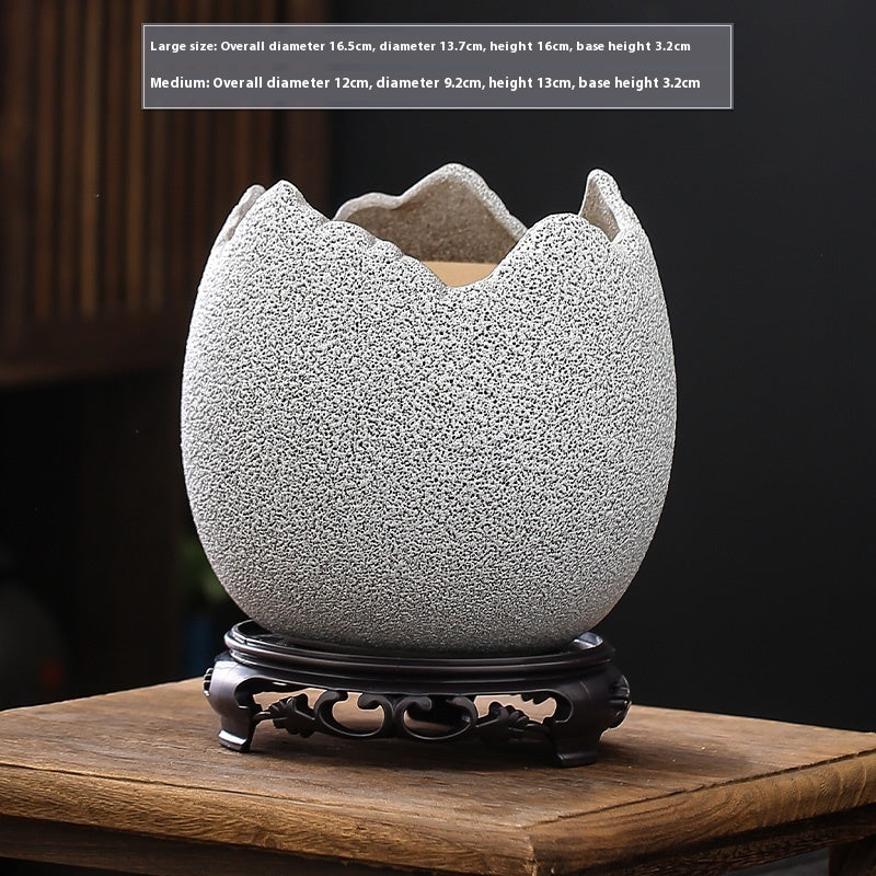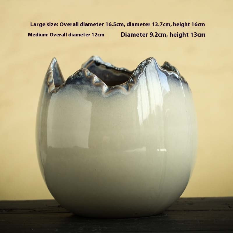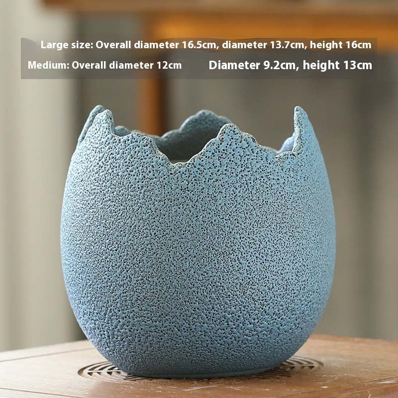 Lovely XYD ceramic egg shell pots in various colors for indoor/outdoor ornamentation. Simple style, floor type application. Perfect for indoor or outdoor decoration. Medium and large sizes with optional bases for added convenience.