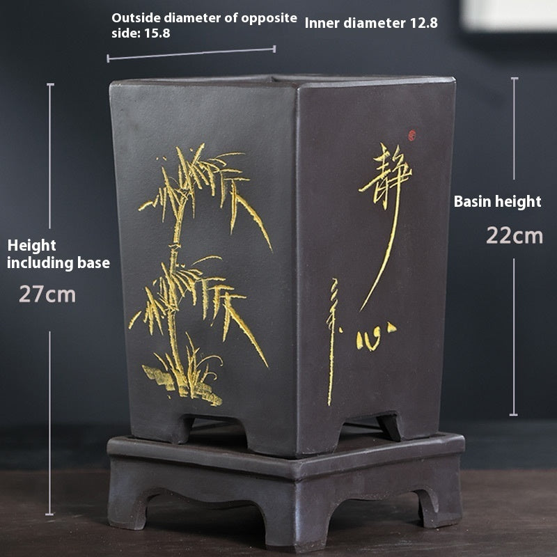 Square Bamboo Shadow Breeze – Black (with saucer)